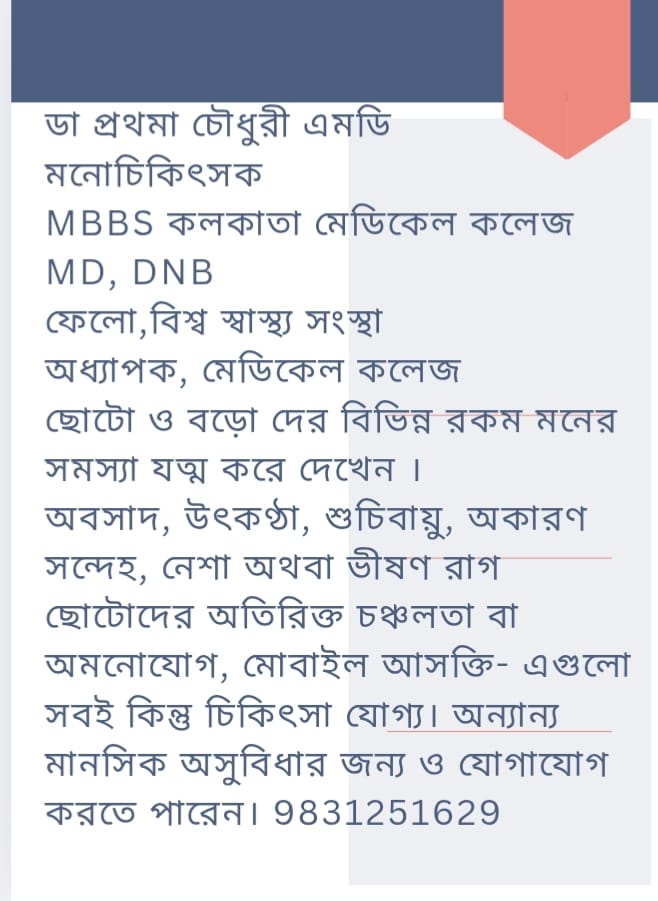 My husband was addicted to tobacco. He began to have ulcers in the mouth and yet could not quit. Then we went to Prathama Chaudhuri who helped us with medicine and counselling. Now my husband is totally out of the habit and is having no health issues. She was a life saviour for us. Thank you.
